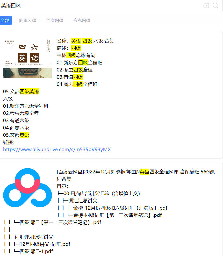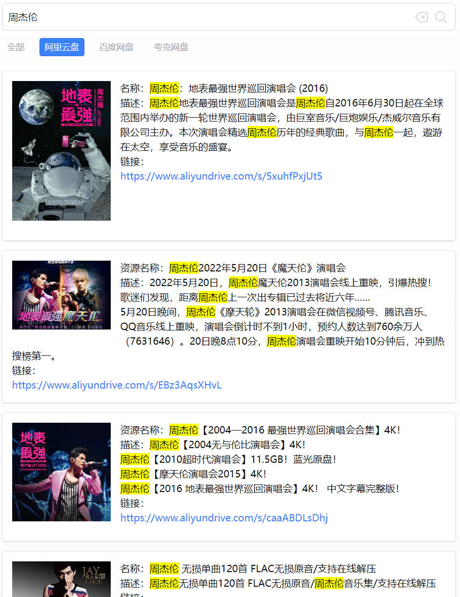检索示例,点击网盘链接可直接转存。